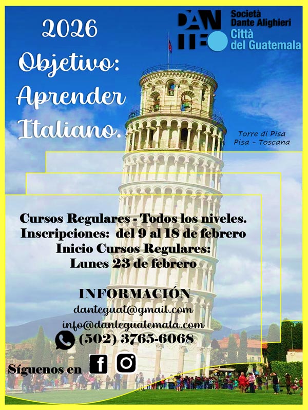 Aprender italiano no es solo dominar un idioma, es abrir puertas a nuevas oportunidades. Con 40 años de enseñanza del idioma italiano en Guatemala, con la Dante estas en buenas manos.
