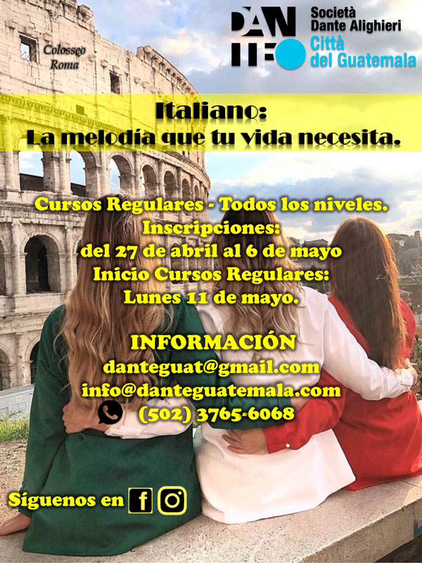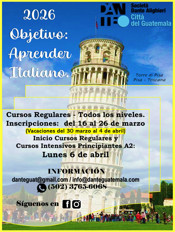 Aprender italiano no es solo dominar un idioma, es abrir puertas a nuevas oportunidades. Con 40 años de enseñanza del idioma italiano en Guatemala, con la Dante estas en buenas manos.